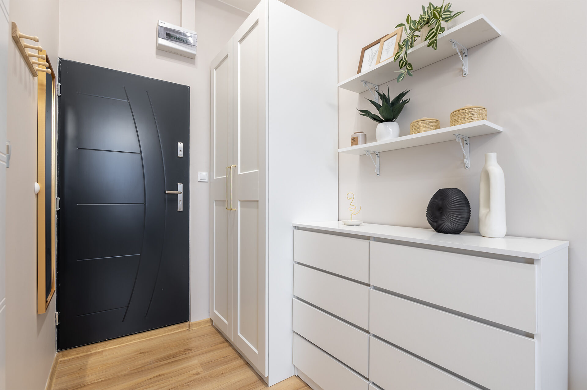 Jak wszystkie nasze projekty, mieszkanie wyremontowane zostało z najwyższą starannością i dbałością o ważne elementy techniczne – odpowiednią wentylację, elektrykę i kanalizację. Pozwoli to na otrzymywanie pozytywnych opinii przy corocznych przeglądach kominiarskich oraz zapewni spokój w obsłudze technicznej mieszkania.